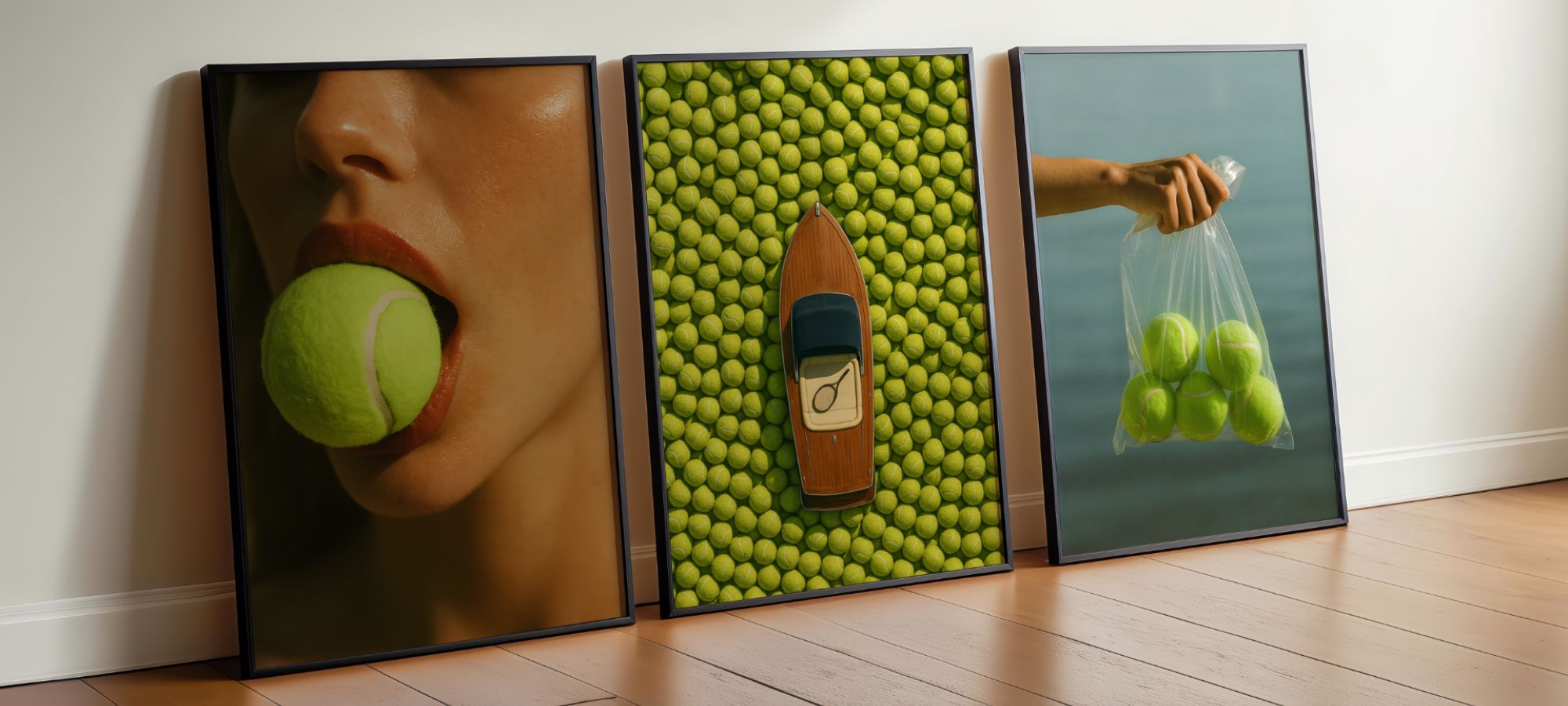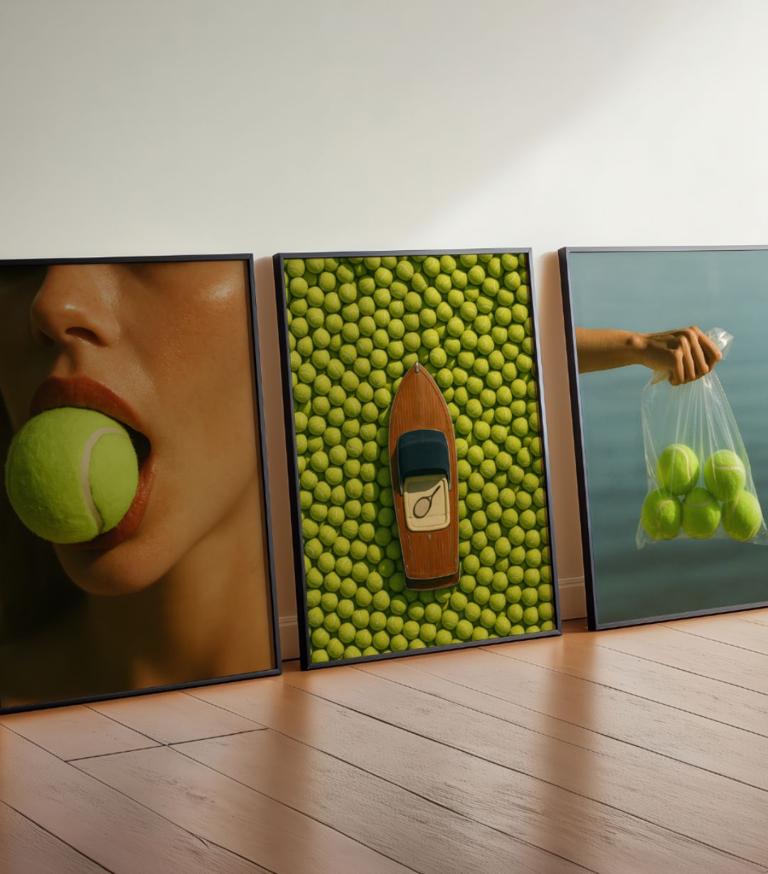 Every piece we create is born from a deep reverence for tennis—not just as a sport, but as an art form. While the geometry of the court often inspires us, our work goes beyond it. We draw from the rhythm of the rally, the elegance of motion, and the atmosphere of match day. From prints that echo court lines to pieces that capture the sport’s soul, we obsess over every detail to honor tennis through design.